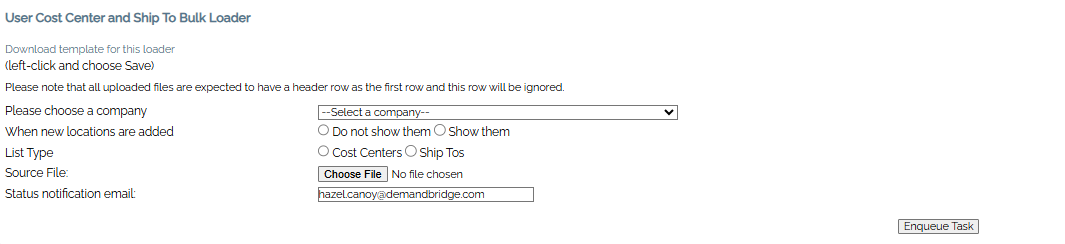 5. Enter an e-mail notification address. This address will receive and e-mail when the bulk load has been completed.