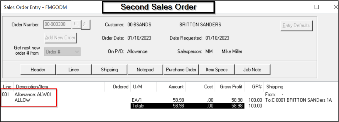 The Allowance Used is displayed in the totals of the Order Confirmation.
